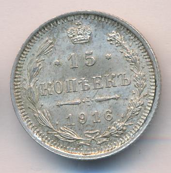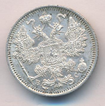 Лицевая сторона — гербовый орел, оборотная —обозначение номинала (15 копеекъ), окруженное венком из лавровой и дубовой ветвей и дата.