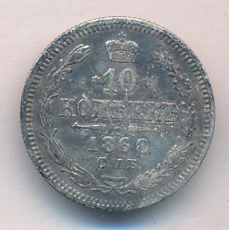 Лицевая сторона — гербовый орел, оборотная —обозначение номинала (10 копеекъ), окруженное венком из лавровой и дубовой ветвей и дата.