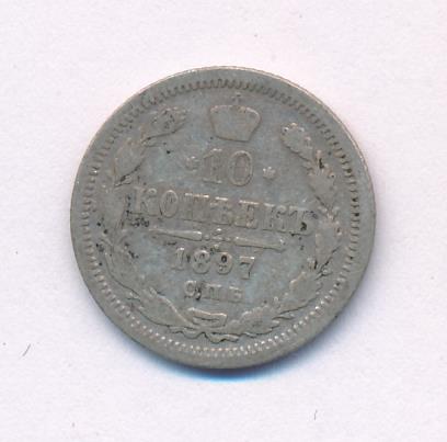 Лицевая сторона — гербовый орел, оборотная —обозначение номинала (10 копеекъ), окруженное венком из лавровой и дубовой ветвей и дата.