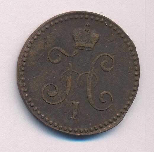 Лицевая сторона — вензель Николая I в бусовом ободке, оборотная — надпись «1 КОПЕЙКА СЕРЕБРОМ» и дата. Нормативный вес — 10,24 грамма, гурт гладкий.