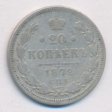 Лицевая сторона — гербовый орел, оборотная —обозначение номинала (20 копеекъ), окруженное венком из лавровой и дубовой ветвей и дата.