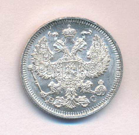 Лицевая сторона — гербовый орел, оборотная —обозначение номинала (20 копеекъ), окруженное венком из лавровой и дубовой ветвей и дата.