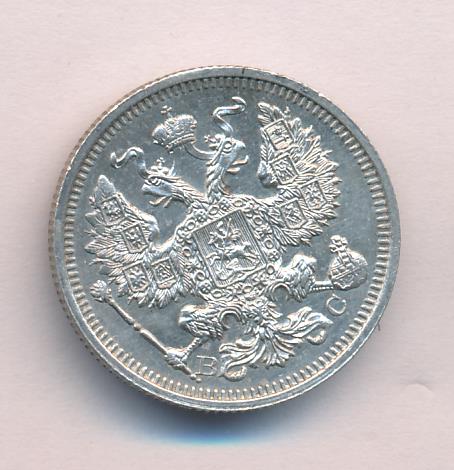 Лицевая сторона — гербовый орел, оборотная —обозначение номинала (20 копеекъ), окруженное венком из лавровой и дубовой ветвей и дата.