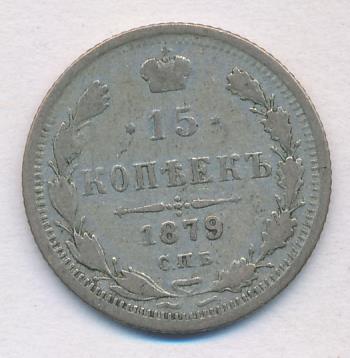 Лицевая сторона — гербовый орел, оборотная —обозначение номинала (15 копеекъ), окруженное венком из лавровой и дубовой ветвей и дата.