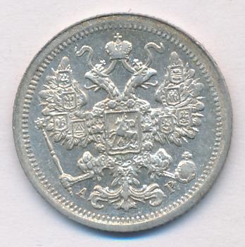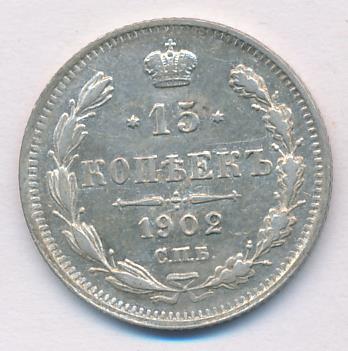 Лицевая сторона — гербовый орел, оборотная —обозначение номинала (15 копеекъ), окруженное венком из лавровой и дубовой ветвей и дата.