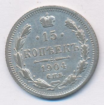 Лицевая сторона — гербовый орел, оборотная —обозначение номинала (15 копеекъ), окруженное венком из лавровой и дубовой ветвей и дата.