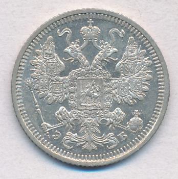 Лицевая сторона — гербовый орел, оборотная —обозначение номинала (15 копеекъ), окруженное венком из лавровой и дубовой ветвей и дата.