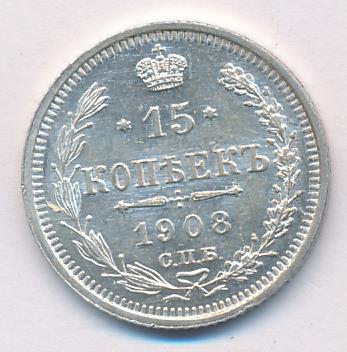 Лицевая сторона — гербовый орел, оборотная —обозначение номинала (15 копеекъ), окруженное венком из лавровой и дубовой ветвей и дата.