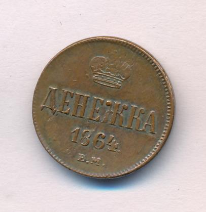 Лицевая сторона — вензель Николая I, оборотная — обозначение номинала (денежка) и дата. Нормативный вес — 2,56 грамма, гурт гладкий.