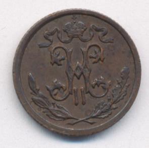 Лицевая сторона — вензель Александра II в венке из лавровой и дубовой ветвей; оборотная — обозначение номинала (1/2 копейки) и дата. Нормативный вес — 1,64 грамма, гурт рубчатый.