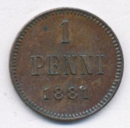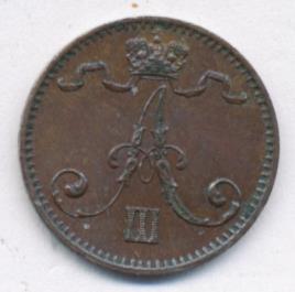 Лицевая сторона — вензель Александра II, оборотная — номинал (1 PENNIA) и дата. Нормативный вес — 1,28 грамма, гурт гладкий.