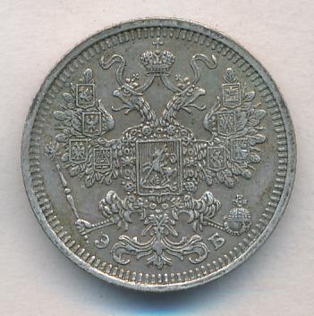 Лицевая сторона — гербовый орел, оборотная —обозначение номинала (15 копеекъ), окруженное венком из лавровой и дубовой ветвей и дата.