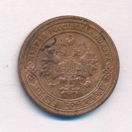 Лицевая сторона — двуглавый орел, надпись МЕДНАЯ РОССIЙСКАЯ МОНЕТА и обозначение номинала (одна копейка); оборотная — обозначение номинала (1 копейка) в бусовом ободке и дата. Нормативный вес — 3,28 грамма, гурт рубчатый.