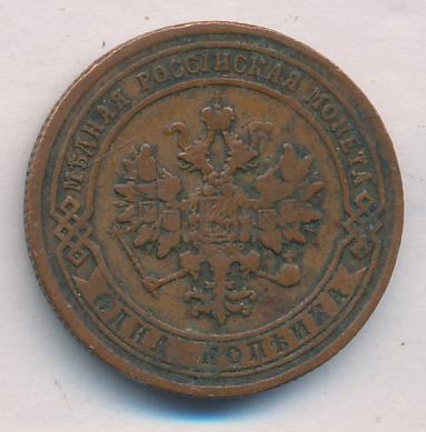 Лицевая сторона — двуглавый орел, надпись МЕДНАЯ РОССIЙСКАЯ МОНЕТА и обозначение номинала (одна копейка); оборотная — обозначение номинала (1 копейка) в бусовом ободке и дата. Нормативный вес — 3,28 грамма, гурт рубчатый.