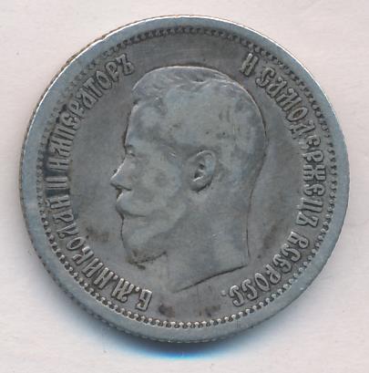 Лицевая сторона — портрет Николая II в круговой надписи «Б.М. НИКОЛАЙ II ИМПЕРАТОРЪ И САМОДЕРЖЕЦЪ ВСЕРОСС», оборотная — двуглавый орел, обозначение номинала (25 копеекъ) и дата.