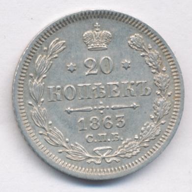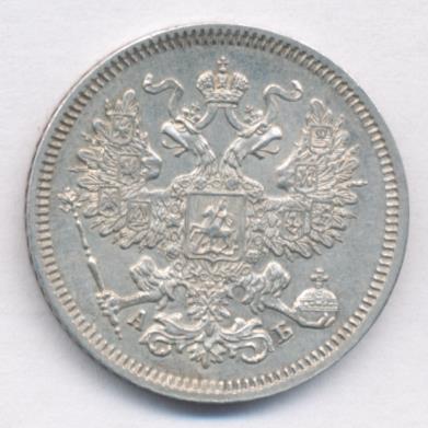 Лицевая сторона — гербовый орел, оборотная —обозначение номинала (20 копеекъ), окруженное венком из лавровой и дубовой ветвей и дата.