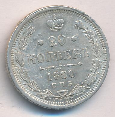 Лицевая сторона — гербовый орел, оборотная —обозначение номинала (20 копеекъ), окруженное венком из лавровой и дубовой ветвей и дата.