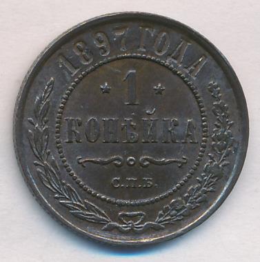 Лицевая сторона — двуглавый орел, надпись МЕДНАЯ РОССIЙСКАЯ МОНЕТА и обозначение номинала (одна копейка); оборотная — обозначение номинала (1 копейка) в бусовом ободке и дата. Нормативный вес — 3,28 грамма, гурт рубчатый.
