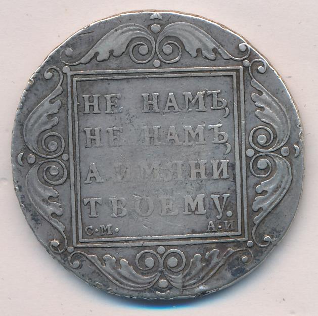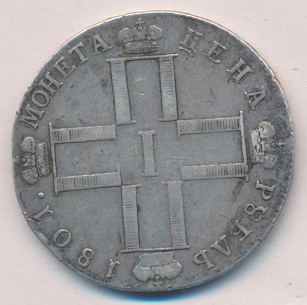 Лицевая сторона - крестообразная монограмма из четырех П и I в центре, надпись «МОНЕТА ЦЕНА РУБЛЬ» и дата, оборотная - надпись «НЕ НАМ, НЕ НАМ, А ИМЯНИ ТВОЕМУ» в картуше. Проба — 868, нормативный вес — 20,73 грамма, гурт — надпись «восемдесятъ третеи съ одною третью пробы».
