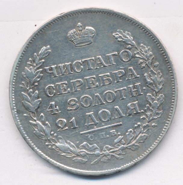Выделяют три типа орла. Лицевая сторона - двуглавый орел, дата и надпись «МОНЕТА РУБЛЬ», оборотная — окруженная венком из лавровой и дубовой ветвей надпись «ЧИСТАГО СЕРЕБРА 4 ЗОЛОТН 21 ДОЛЯ». Проба — 868, нормативный вес — 20,73 грамма.
