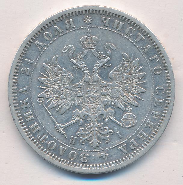 Лицевая сторона — гербовый орел и надпись «ЧИСТОГО СЕРЕБРА 4 ЗОЛОТНИКА 21 ДОЛЯ», оборотная — обозначение номинала «РУБЛЬ», окруженное венком из лавровой и дубовой ветвей и дата.
