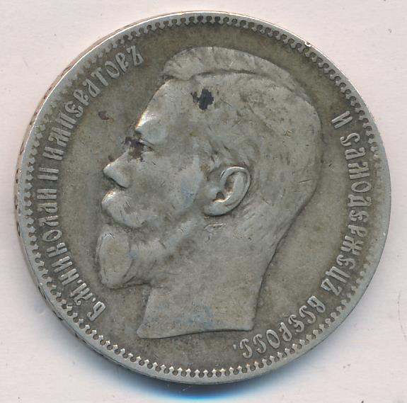 Николай II сохраняет принятый отцом тип, но на банковских монетах его портрет (работы Васютинского) повернут влево (на запад). На оборотной стороне сохраняется тот же герб, вплоть до знака АГ под задней ногой коня.