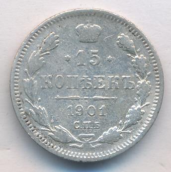 Лицевая сторона — гербовый орел, оборотная —обозначение номинала (15 копеекъ), окруженное венком из лавровой и дубовой ветвей и дата.