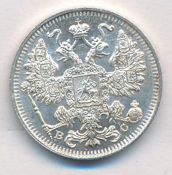 Лицевая сторона — гербовый орел, оборотная —обозначение номинала (15 копеекъ), окруженное венком из лавровой и дубовой ветвей и дата.