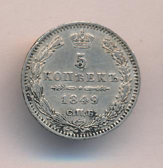 Лицевая сторона — новый гербовый орел с поднятыми крыльями, оборотная —обозначение номинала (5 копеекъ), окруженное венком из лавровой и дубовой ветвей и дата. Проба — 868, нормативный вес — 1,04 грамма.