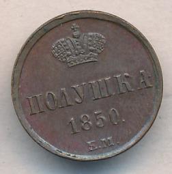 Лицевая сторона — вензель Николая I, оборотная — обозначение номинала (полушка) и дата. Нормативный вес — 1,28 грамма, гурт гладкий.