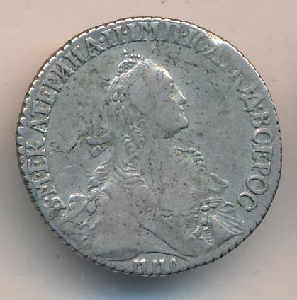 Лицевая сторона — портрет императрицы и надпись «Б М ЕКАТЕРИНА II IМП I САМОД ВСЕРОС», оборотная — двуглавый орел и надпись «ПОЛУПОЛТИННИКЪ» и дата. Проба — 750, нормативный вес — 5,97 грамма, гурт — шнур.
