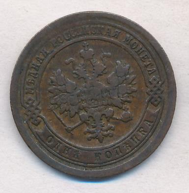 Лицевая сторона — двуглавый орел, надпись МЕДНАЯ РОССIЙСКАЯ МОНЕТА и обозначение номинала (одна копейка); оборотная — обозначение номинала (1 копейка) в бусовом ободке и дата. Нормативный вес — 3,28 грамма, гурт рубчатый.