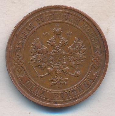 Лицевая сторона — двуглавый орел, надпись МЕДНАЯ РОССIЙСКАЯ МОНЕТА и обозначение номинала (одна копейка); оборотная — обозначение номинала (1 копейка) в бусовом ободке и дата. Нормативный вес — 3,28 грамма, гурт рубчатый.
