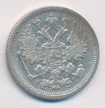 Лицевая сторона — гербовый орел, оборотная —обозначение номинала (15 копеекъ), окруженное венком из лавровой и дубовой ветвей и дата.