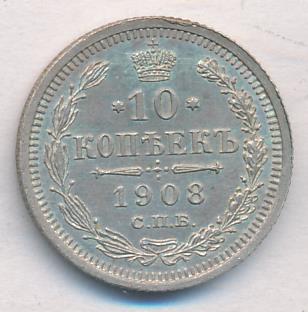Лицевая сторона — гербовый орел, оборотная —обозначение номинала (10 копеекъ), окруженное венком из лавровой и дубовой ветвей и дата.
