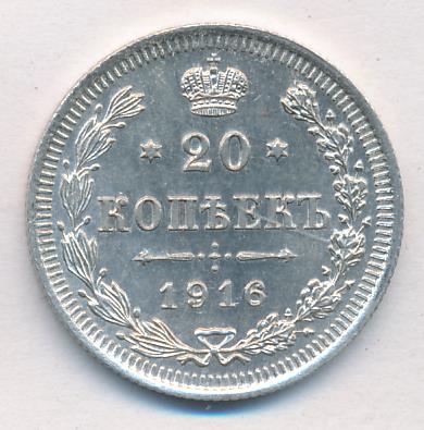 Лицевая сторона — гербовый орел, оборотная —обозначение номинала (20 копеекъ), окруженное венком из лавровой и дубовой ветвей и дата.