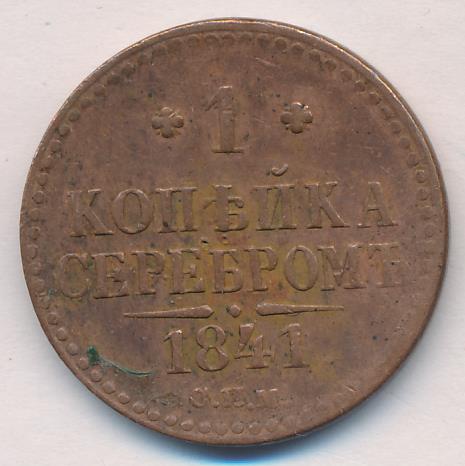 Лицевая сторона — вензель Николая I в бусовом ободке, оборотная — надпись «1 КОПЕЙКА СЕРЕБРОМ» и дата. Нормативный вес — 10,24 грамма, гурт гладкий.