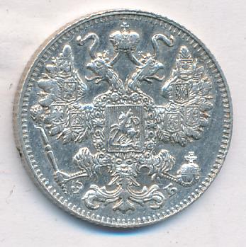Лицевая сторона — гербовый орел, оборотная —обозначение номинала (15 копеекъ), окруженное венком из лавровой и дубовой ветвей и дата.