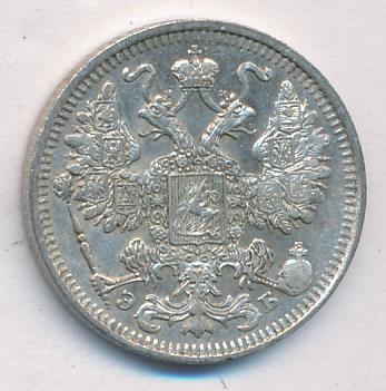 Лицевая сторона — гербовый орел, оборотная —обозначение номинала (15 копеекъ), окруженное венком из лавровой и дубовой ветвей и дата.