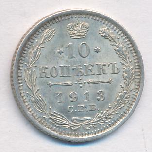 Лицевая сторона — гербовый орел, оборотная —обозначение номинала (10 копеекъ), окруженное венком из лавровой и дубовой ветвей и дата.