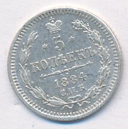 Лицевая сторона — гербовый орел, оборотная —обозначение номинала (5 копеекъ), окруженное венком из лавровой и дубовой ветвей и дата.