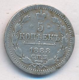 Лицевая сторона — гербовый орел, оборотная —обозначение номинала (5 копеекъ), окруженное венком из лавровой и дубовой ветвей и дата.
