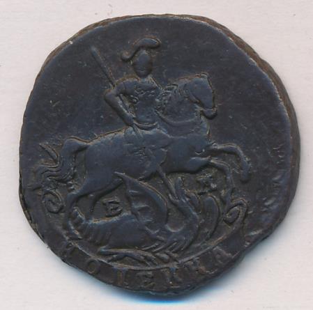 Лицевая сторона — Георгий Победоносец и обозначение номинала (копейка) в картуше, оборотная — вензель Екатерины II и дата. Нормативный вес — 10,24 грамма, гурт — сетка, или узор, или шнур.