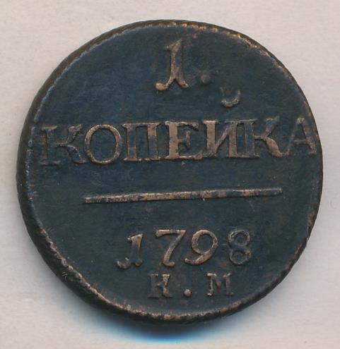 Лицевая сторона — вензель Павла I под короной, оборотная — номинал (1 копейка) и дата. Нормативный вес — 10,24 грамма, гурт — шнур.