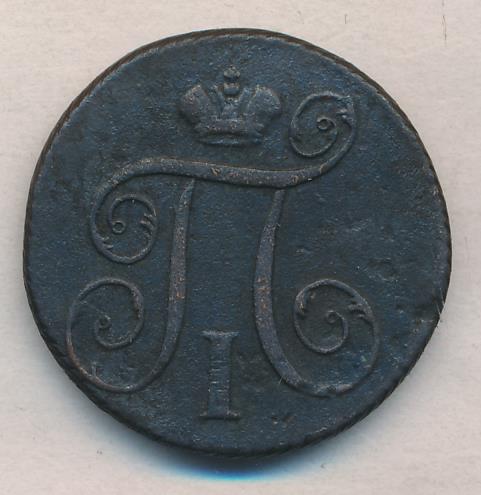 Лицевая сторона — вензель Павла I под короной, оборотная — номинал (1 копейка) и дата. Нормативный вес — 10,24 грамма, гурт — шнур.