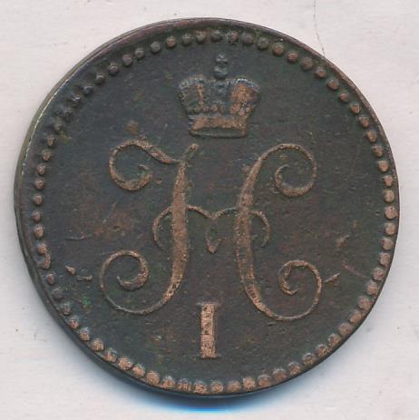 Лицевая сторона — вензель Николая I в бусовом ободке, оборотная — надпись «1 КОПЕЙКА СЕРЕБРОМ» и дата. Нормативный вес — 10,24 грамма, гурт гладкий.