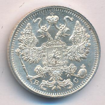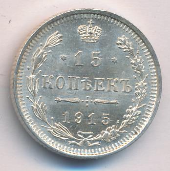 Лицевая сторона — гербовый орел, оборотная —обозначение номинала (15 копеекъ), окруженное венком из лавровой и дубовой ветвей и дата.