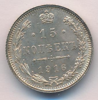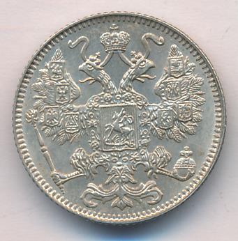 Лицевая сторона — гербовый орел, оборотная —обозначение номинала (15 копеекъ), окруженное венком из лавровой и дубовой ветвей и дата.