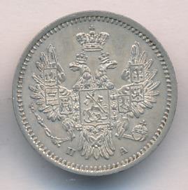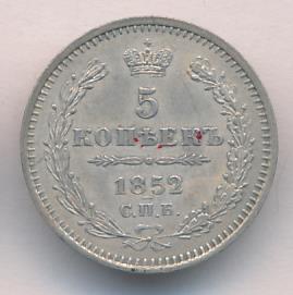Лицевая сторона — новый гербовый орел с поднятыми крыльями, оборотная —обозначение номинала (5 копеекъ), окруженное венком из лавровой и дубовой ветвей и дата. Проба — 868, нормативный вес — 1,04 грамма.