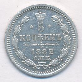 Лицевая сторона — гербовый орел, оборотная —обозначение номинала (5 копеекъ), окруженное венком из лавровой и дубовой ветвей и дата.